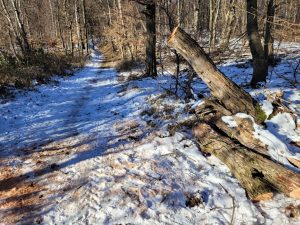 A már több éve jól működő osztrák riadóláncunkról kaptam szombat reggel az értesítést Helenenschachtból (Ilona-aknáról), hogy a 6-os pályánk - a Fehér Kövek - több helyen járhatatlan. Valószínűleg a múlt heti vihar döntött keresztbe néhány komolyabb ágat, fákat. Kaptam az értesítés mellé fotókat is, és a nyilvánvaló intést, hogy motorfűrész is kell az eltakarításhoz.